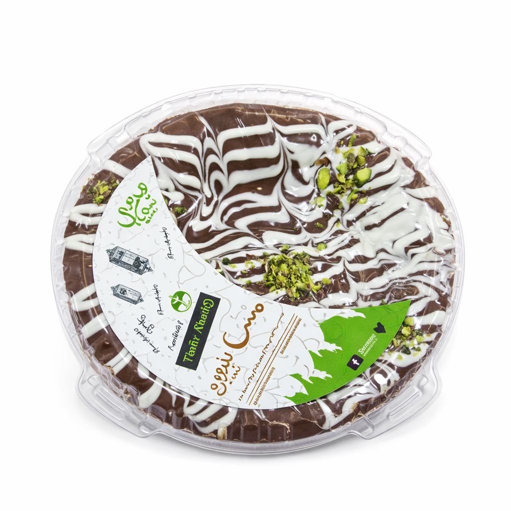 Soft and fluffy traditional Marouk bread generously coated with rich, premium chocolate, elegantly drizzled with fine white chocolate and topped with crushed pistachios for a distinctive flavor and delightful crunch. This product combines authentic Ramadan taste with a modern touch, making it a perfect choice for gatherings or to enjoy after Iftar with coffee or tea.