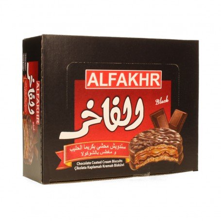 Biscuits filled with milk cream and covered with chocolate. 12 pieces
