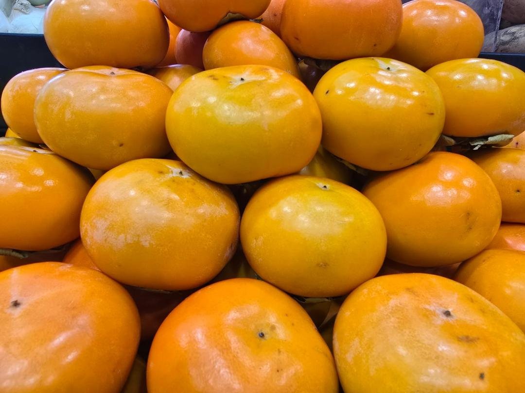 Persimmons have a sweet, tangy taste and are shaped like tomatoes. The persimmon tree usually bears fruit in the fall.